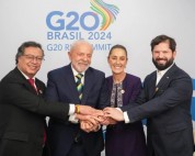 La presidenta Claudia Sheinbaum compartió una foto en su cuenta de X con los presidentes de Brasil, Chile y Colombia en la Cumbre de Líderes del G20.