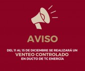 ¡No se alarme! Del 11 al 15 de diciembre se realizará un venteo controlado en ducto de TC Energía |