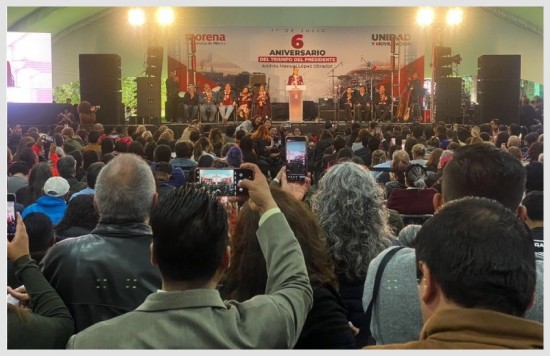 Sheinbaum Pardo encabezó este lunes un acto organizado por Morena en el Centro Cultural Los Pinos para conmemorar los comicios de hace seis años, con los que López Obrador llegó a la presidencia. | ||||||