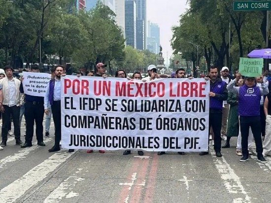 Ciudad de México.- Trabajadores del Poder Judicial de la Federación se manifestaron en el Senado de la República, en contra de la Reforma Judicial, así mismo un grupo de personas, integrantes del Colectivo Nacional No Más Presos Inocentes, llegaron para pronunciarse a favor de la iniciativa propuesta por el ejecutivo.