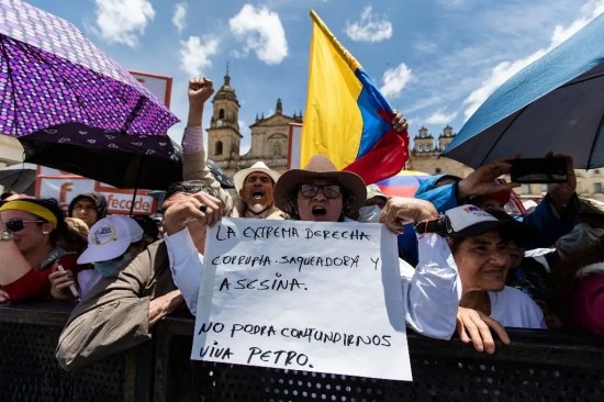 El viento agitaba las carpas blancas y las banderas que ondeaban en el aire: Palestina, el Movimiento 19 de abril, Colombia Humana, las centrales obreras. El escenario estaba listo para el ritual de la política en las calles, con las consignas que se repetían como un mantra: "No pasarán", "Petro, el pueblo está contigo". Entre la multitud, Manuel Vergara, un hombre de rostro curtido y cuerpo delgado, aguardaba paciente. "Estoy aquí porque no es posible que nos quieran tumbar la reforma pensional", dijo, su voz entrecortada por el aire seco, a la Agencia Sputnik. "Era una esperanza para nosotros, los viejos", agregó el trabajador independiente de más de 70 años, quien acudió a la manifestación junto a su esposa. La reforma de las pensiones fue aprobada en junio por el Congreso de Colombia y busca cambiar el sistema de retiro para proteger a millones de adultos, así como a quienes no lograron completar los requisitos para obtener los beneficios de jubilación. Sin embargo, es resistida por la oposición y en medio de una lucha de Titanes la Corte Constitucional podría declararla exequible y eliminarla del ordenamiento jurídico. En la plaza, un punto habitual de las manifestaciones políticas por su cercanía al Congreso, las cortes y la Casa Presidencial, el ambiente era una mezcla de fervor y cotidianidad. Mientras unos gritaban consignas en contra de la oligarquía y los poderes económicos, otros comían fruta comprada a los vendedores ambulantes. En las pantallas gigantes se proyectaban entrevistas a los manifestantes. A pesar del calor, nadie se movía. A las 14.30, Petro apareció en la tarima y el clamor de la plaza fue instantáneo. El grito "Petro, el pueblo está contigo" se mezclaba con otro, más desafiante: "No pasarán". Una consigna que Petro mismo ha repetido en sus discursos, una declaración de guerra a los políticos que, según él, quieren verlo fuera del poder. La semana pasada, Petro afirmó que se acercaba un golpe de Estado en su contra ya que la Comisión Nacional Electoral (CNE) se aprestaba a determinar si investigaba al mandatario por un tema de financiamiento de su campaña en 2022. El jueves, entre la marea de cuerpos y voces, Luisa Méndez, una joven activista llegada desde Soacha, al sur de Bogotá, levantaba el puño con determinación. "Lo que está haciendo la oligarquía y los medios es tratar de sacar al presidente, y no lo vamos a permitir", afirmó con la misma pasión que parecía envolver a toda la plaza. Durante una hora, Petro habló de lo que muchos consideran la batalla crucial: la reforma pensional. Una reforma que es el estandarte de su política social y que el ex guerrillero pretende defender a capa y espada junto a sus partidarios. "Esto no es solo una marcha", dijo, "es el inicio de un ejercicio de hegemonía popular, del poder popular". |