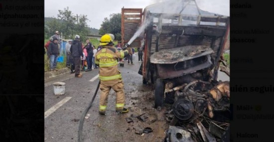| Momento exacto en que un Tesla choca contra una camioneta dejando 3 calcinados en Tlaxco-Chignahuapa. | ||||||