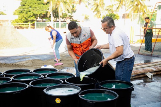 Bomberos conurbados realiza trasiego de diésel en bidones de 20 litros, los cuales fueron proporcionados por personal de la tienda.