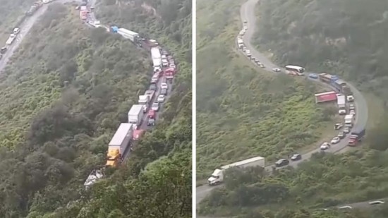 Caos vial en Cumbres de Acultzingo por derrumbe en la Autopista Puebla - Orizaba; filas rebasan los 10 km. | ||||||