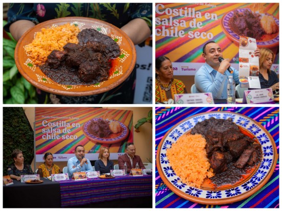 Para posicionarla como un producto más de la oferta turística de la ciudad y celebrar este 16 de noviembre el Día Nacional de la Gastronomía Mexicana, autoridades municipales presentaron el recetario que incluye la costilla de puerco en salsa de chile seco, el platillo representativo de Xalapa. El director de Turismo, Josué Vázquez González, recordó que de acuerdo con la convocatoria “En Busca del Platillo Representativo de Xalapa”, la receta presentada por Rosalba García Vela fue la ganadora de este concurso y, ahora, se incluye en este recetario, junto con otras variantes de este platillo. El objetivo, agregó, es que el mayor número de restaurantes oferten el 16 de noviembre la costilla en salsa de chile seco, con el fin de preservar y difundir el patrimonio de la región capital. “Que le den un valor y que podamos decir que en Xalapa celebraremos el Día Nacional de la Gastronomía Mexicana comiendo y degustando la costilla”. Detalló que, además, la receta será compartida en el sector restaurantero local, con el fin de que se integre a las cartas y menús de los establecimientos de alimentos. La regidora Ana Cristina Hernández Aburto dijo que con estas acciones se sigue fortaleciendo el turismo gastronómico de la ciudad. Asistieron el regidor Diego David Florescano Pérez, Rosalba García Vela, ganadora platillo representativo de Xalapa, y Raquel Torres Cerdán, del Taller de Cocina Tradicional Mexicana “Acuyo”. |