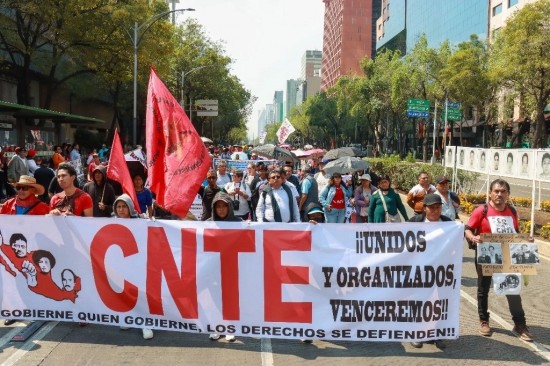 | Los docentes marcharon también para demandar la abrogación de la ley del Instituto de Seguridad y Servicios Sociales de los Trabajadores del Estado (ISSSTE). | ||||||