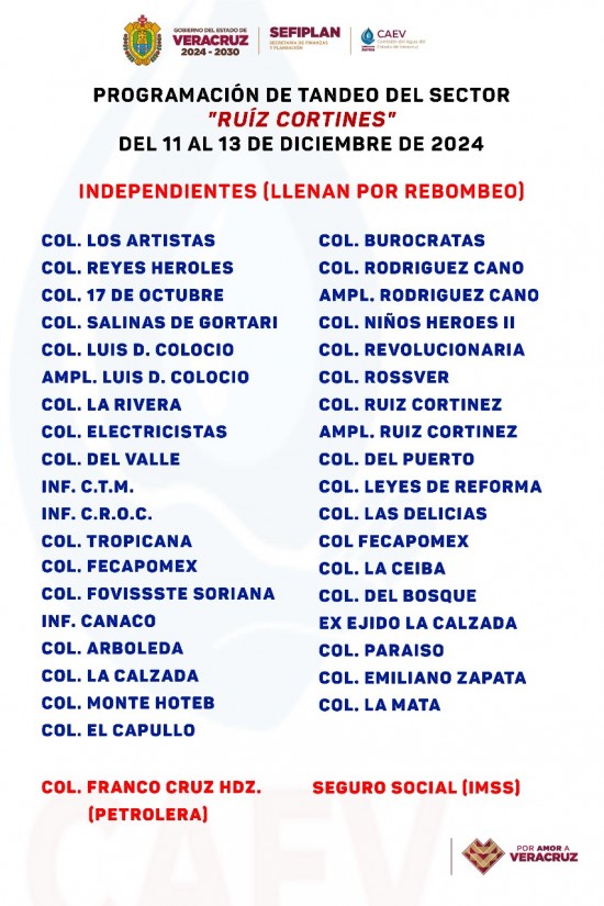 Programación del tandeo sector 'Ruiz Cortines'. | ||||||