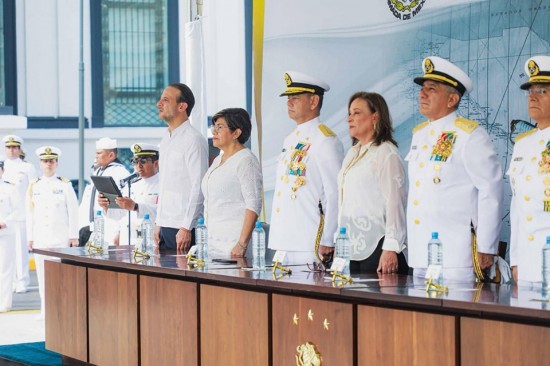 Boca del Río, Ver.- El alcalde de Boca del Río, Juan Manuel de Unanue, asistió a la ceremonia de entrega-recepción del mando de armas de la Primera Región Naval, el miércoles.