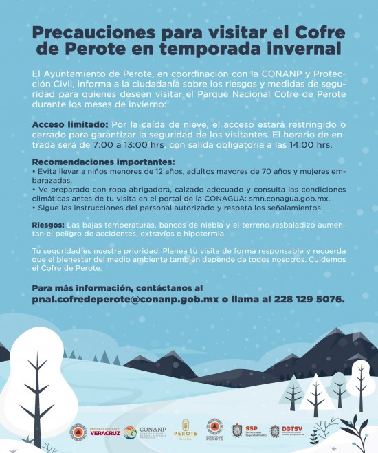 Precauciones para visitar el Cofre de Perote en invierno. |