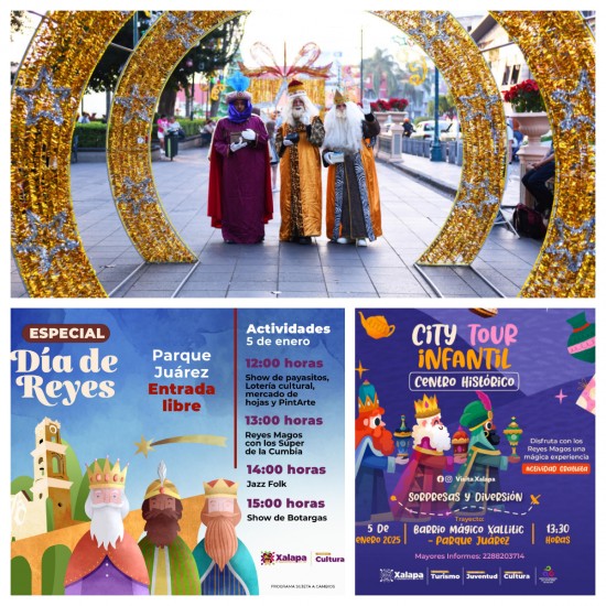 Con el objetivo de conservar las tradiciones y celebrar las festividades de la temporada, el Ayuntamiento de Xalapa, a través de las direcciones de Cultura, Turismo y Juventud, invita a todas las familias xalapeñas a disfrutar del “Especial Día de Reyes”, que se realizará el próximo 5 de enero en el Parque Benito Juárez. A partir de las 12:00 horas, este evento gratuito ofrecerá una serie de actividades que incluirán un show de payasitos, lotería cultural, Mercado de Hojas y la divertida propuesta PintArte. A las 13:00 horas, se contará con la participación especial de los Reyes Magos, acompañados por el grupo Súper de la Cumbia, que pondrá a bailar a todos los presentes con su ritmo. Además, la diversión y las sorpresas estarán garantizadas con el City Tour Infantil, que comenzará a las 13:30 horas en el Barrio Mágico de Xallitic y concluirá en el Parque Juárez. La jornada continuará con un toque único de Jazz Folk a las 14:00 horas, en una presentación que fusiona tradición. El evento culminará a las 15:00 horas con el esperado show de botargas, que llenará de magia e ilusión el ambiente, brindando un cierre perfecto a esta celebración. |