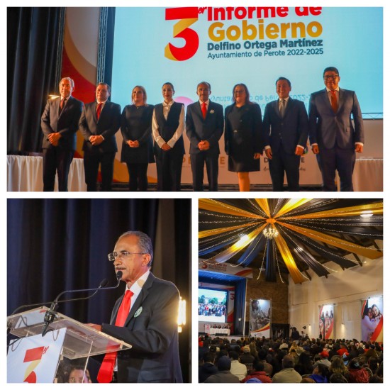 El Ayuntamiento de Perote, encabezado por el Presidente Municipal Delfino Ortega, presentó el Tercer Informe de Gobierno, destacando los logros alcanzados gracias al esfuerzo conjunto de regidores, directores, coordinadores y todo el equipo que forma parte de esta administración. Agradecemos a la ciudadanía por su confianza y apoyo, pues juntos seguimos construyendo un Perote que trasciende contigo. ¡El trabajo no se detiene! |