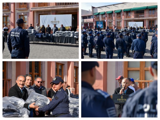 Perote, Ver.- Hoy, el Presidente Municipal, Delfino Ortega, realizó la entrega de uniformes nuevos a los elementos de la Policía Municipal, reafirmando el compromiso del Ayuntamiento de Perote con la seguridad de la ciudadanía.