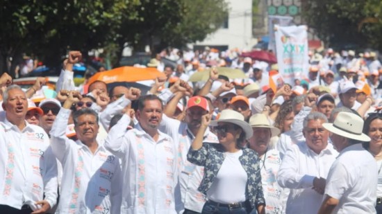 Miles de docentes del Equipo Político de la Sección 32 del Sindicato Nacional de Trabajadores de la Educación (SNTE) manifestaron su rechazo a la gestión de Claudia Tello, quien está bajo la protección de la gobernadora Rocío Nahle.