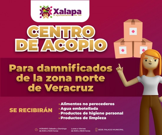 XALAPA.- El ayuntamiento de Xalapa llamó a la población, así como a los sectores sociales y productivos de la capital del estado, a sumarse a la donación de víveres y artículos de primera necesidad en apoyo a las familias damnificadas por las lluvias e inundaciones que afectaron la zona norte del estado. A través del centro de acopio instalado en el patio central de palacio municipal, se reciben productos no perecederos, agua embotellada, artículos de higiene personal y de limpieza para el hogar, que serán entregados directamente a las comunidades afectadas por personal del ayuntamiento. Las donaciones se reciben de lunes a viernes, de 9 a 18 horas, y los fines de semana, de 9 a 15 horas. El gobierno municipal reiteró su llamado a mantener la solidaridad que distingue a las y los xalapeños, al recordar que cada aportación, por pequeña que sea, representa apoyo y esperanza para las familias que hoy enfrentan pérdidas por las recientes lluvias.