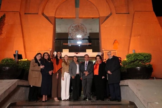 Previo al evento, La magistrada Maya García, acompañada de los magistrados integrantes del TDJ: Indira Isabel García Pérez, Verónica de Gyvés Zárate, Bernardo Bátiz Vázquez, Rufino H. León Tovar, y de la maestra Catalina Ramírez Hernández, integrante del Órgano de Administración Judicial (OAJ), encendió la iluminación de color naranja del edificio sede del Tribunal, como símbolo de esperanza, prevención y compromiso para poner fin a todas las formas de violencia contra las mujeres y las niñas.