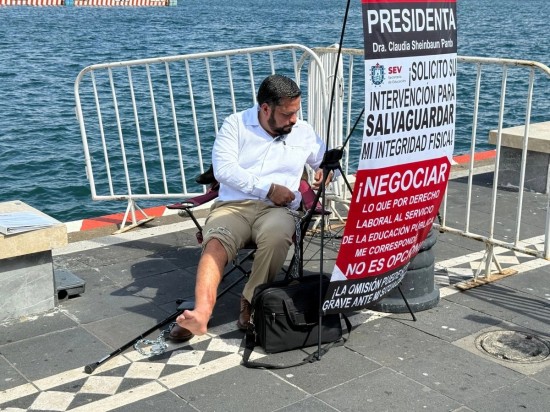 El docente tomó dicha decisión tras ser ignorado por el gobierno de Rocío Nahle Garcia ante sus exigencias del pago del seguro institucional por invalidez, él cual necesita para sobrevivir y pagar deudas. Explicó que en el 2021 viajaba en su motocicleta para realizar trabajos de faena en una de las escuelas en las que trabajaba, cuando fue impactado por un camión; al ser atendido sufrió una fuerte infección en la pierna lesionada por lo que estuvo a punto de ser amputada. Ríos Andrade logró salvar la pierna al acudir a un hospital privado, sin embargo ello le acarreó muchas deudas, además de que fue declarado con invalidez, por lo que ahora necesita el pago de su seguro por parte del Gobierno de Veracruz. “Fui dictaminado con pensión por invalidez, es lo único que estoy pidiendo para pagar todas mis deudas, mi daño patrimonial es de más de 2 millones y medio de pesos por las 11 operaciones que me hicieron para salvar mi pierna”, comentó. Aseguró que confía en el gobierno estatal y federal, sin embargo recientemente se ha decepcionado, pues ya se había dado la orden por parte de Nahle García para que se le pagara, sin embargo ello no ocurrió. Enfatizó que no se moverá del lugar hasta que el dinero correspondiente al seguro se vea reflejado en su cuenta bancaria, pues dijo que en otras ocasiones ha sido engañado por personal de Gobernación del Estado de Veracruz. "Hoy me encuentro aquí no por gusto, sino por necesidad, estoy consciente de esta humillación publica por parte del Gobierno del estado hacia mi persona y mi profesión como maestro Veracruzano sin embargo, deseo con esta acción despertar conciencias y dignificar al glorioso magisterio veracruzano”, sentenció. Cabe señalar que a la celebración de la Marina Armada de México se espera la visita de la Presidenta Claudia Sheinbaum y de otros funcionarios de alto nivel del gobierno federal. |