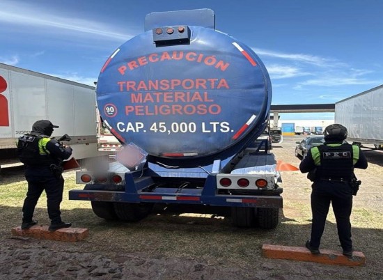La pipa fue encontrada por elementos de las Fuerzas de Seguridad Pública del Estado (FSPE), cuando patrullaban la carretera Celaya–Dolores Hidalgo. “En el lugar observaron el remolque tipo pipa color azul, con placas del Servicio Público Federal, estacionado sin tripulación ni señales de resguardo”, mencionó. Agregó que testigos informaron que la pipa tenía una semana estacionada en el lugar. “También señalaron que la pipa presentaba una fuga visible en la escotilla lateral derecha, lo que representaba un riesgo para quienes transitaban por la zona y para la estación de servicio cercana”, refirió. Cuando los oficiales inspeccionaron la pipa, detectaron que la escotilla superior estaba abierta con el contenedor al 100 por ciento de su capacidad. “Los oficiales consultaron el estatus de la unidad con el Sistema estatal C5i y se confirmó que no contaba con reporte de robo”, reveló. La pipa fue asegurada por la fuga y porque no había elementos para acreditar la procedencia legal del combustible, mencionó la secretaría. “La unidad fue trasladada y puesta a disposición de la Fiscalía General de la República (FGR), con sede en Celaya, para continuar con las investigaciones correspondientes y determinar la situación jurídica del hidrocarburo”, concluyó. |