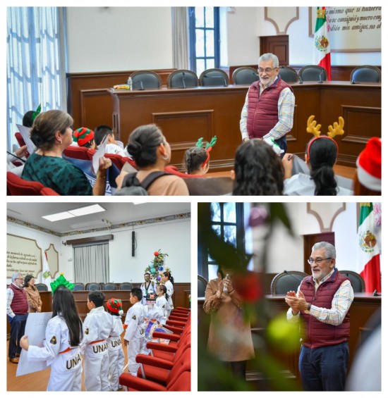 Como parte de las acciones de fomento a las tradiciones, el alcalde Alberto Islas Reyes recibió en la Sala de Cabildo a integrantes del Club de Taekwondo Pumas Myeong Xalapa, quienes le cantaron La Rama.