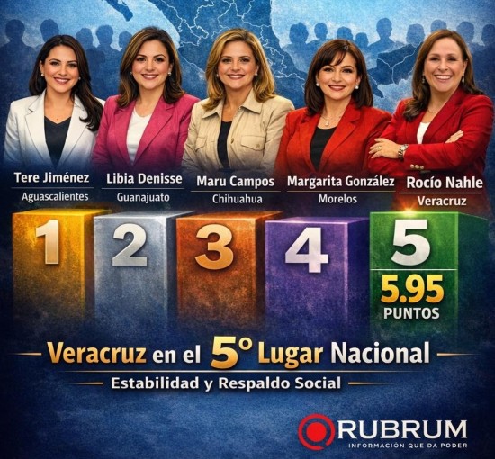 XALAPA.- Aunque cada quien busca sus encuestas a modo, cuchareadas como decía en sus tiempos el ex presidente Andrés Manuel López Obrador, de acuerdo con un estudio realizado por la empresa RUBRUM para medir el desempeño y el liderazgo femenino, la gobernadora Rocío Nahle García se encuentra en el Top 5 nacional, al ocupar la quinta posición, destacando el trabajo positivo que realiza al frente del Gobierno del Estado. Con base en los resultados de la encuesta, que evalúa aspectos clave como seguridad, salud, transporte y cercanía con la ciudadanía, este reconocimiento refleja el trabajo realizado y la confianza de la gente. Conforme al resultado del estudio, la gobernadora Rocío Nahle García obtuvo una calificación de 5.95 puntos en desempeño general y las áreas evaluadas son seguridad pública, sistema de salud, transporte público y cercanía con la población. La encuesta de RUBRUM refleja que Veracruz destaca en varios aspectos clave, lo que fortalece la imagen de Rocío Nahle García en el escenario nacional. Así las cosas.