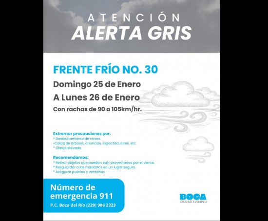 | Boca del Río: Alerta gris, Frente frío. |