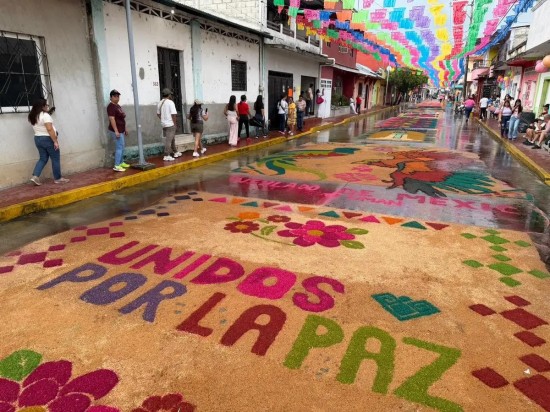 Los residentes expresan su sincretismo con esta muestra artesanal que atrae a casi 200 mil personas cada año durante las festividades religiosas y culturales. Romeo Barrios Moreno, integrante del Consejo Parroquial de la localidad, contó que de acuerdo a la historia en el siglo 17 aparecieron tres vírgenes en el mar del pacífico mexicano. Una, la Virgen de Tránsito, fue llevada a un poblado en Guatemala, y dos más quedaron en Chiapas: Santa María de Candelaria en Tuxtla Chico e Inmaculada Margarita de Concepción en Mazatán. Desde entonces han sido veneradas con gran devoción por las comunidades fronterizas de México y Guatemala. Margarita Concepción Coello Nájera, de 69 años de edad, recuerda que desde hace tres décadas participa en la elaboración de las alfombras y a lo largo de estos años se han sumado sus hijos y sus nietos por lo que se ha convertido en una tradición familiar. “Tenemos mucha fe en la Virgen, siempre nos cumple lo que pedimos, principalmente salud y bendición para la familia. Nos toca cumplirle y adorarla”, expresó. En las alfombras las familias plasman sus peticiones con creatividad a través de variados diseños desde figuras de caricatura hasta verdaderas obras artísticas. Julio Gamboa Altuzar, alcalde de Tuxtla Chico- una pequeña localidad de apenas unos 41 mil habitantes- dijo que cada año se baten los récord de asistencia y el atractivo ha merecido la atención nacional e internacional tanto que en el principal día de la Feria la fila de vehículos para ingresar al pueblo supera los cinco kilómetros. Las alfombras, el fervor religioso, los sabores como el chocolate, pan y tamales, y otros atractivos artísticos le han merecido la autodeterminación de la “capital cultural del soconusco”, en la frontera sur. Sin tener la distinción oficial, agregó Gamboa Altuzar, la demarcación cumple con todas las características que lo hacen un pueblo mágico. |
