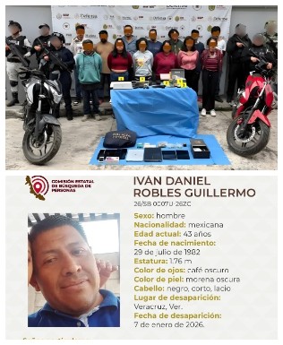 Trece personas ya fueron vinculadas a proceso luego de un operativo de cateo realizado en el municipio de Emiliano Zapata, donde autoridades federales y estatales aseguraron diversos objetos presuntamente relacionados con actividades ilícitas. La Fiscalía General del Estado informa que personal de la Fiscalía Regional Xalapa, integrado por fiscales, peritos y policías ministeriales, llevó a cabo la diligencia en coordinación con la Secretaría de la Defensa Nacional, Guardia Nacional y la Secretaría de Seguridad Pública del Estado, el operativo se realizó en cumplimiento de una orden judicial. Durante la intervención fueron detenidos en el lugar Eduardo “N”, Iraní Itzel “N”, Guadalupe “N”, Nayeli “N”, Eduardo “N”, Joel “N”, Roberto “N”, Guadalupe “N”, Gerardo “N”, Gamaliel “N”, Andrés Roberto “N”, Mariana “N” y Ximena Sinaí “N”. En el inmueble se aseguraron computadoras, teléfonos celulares, identificaciones, tabletas electrónicas y una chamarra con insignias similares a las de una corporación policial. Además, se localizaron armas de fuego, casquillos, hierba seca con características de marihuana, pipas, encendedores, básculas grameras, así como una carretilla y varias motocicletas. Las autoridades informaron que los indicios quedaron integrados a la carpeta de investigación correspondiente y que las personas detenidas fueron presentadas ante la autoridad judicial, respetando en todo momento sus derechos humanos y el debido proceso, para definir su situación legal...LA COMISIÓN Estatal de Búsqueda reportó la desaparición de Daniel Robles de 43 años en el puerto de Veracruz, el pasado 7 de enero. Iván Daniel Robles Guillermo, mide 1.76 metros, es de tez morena oscura, tiene ojos color café oscuro y el cabello negro, corto y lacio. Como señas particulares, tiene carnosidad debajo en ojo derecho, lunar en la oreja derecha. Cualquier información que ayude a dar con su paradero, favor de reportarla al 911 o al 228 319 3187.