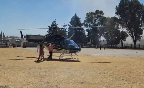 | Edil de Chiconcuac usa helicóptero para arribar al Carnaval de Mujeres de San Pablito. | ||||||