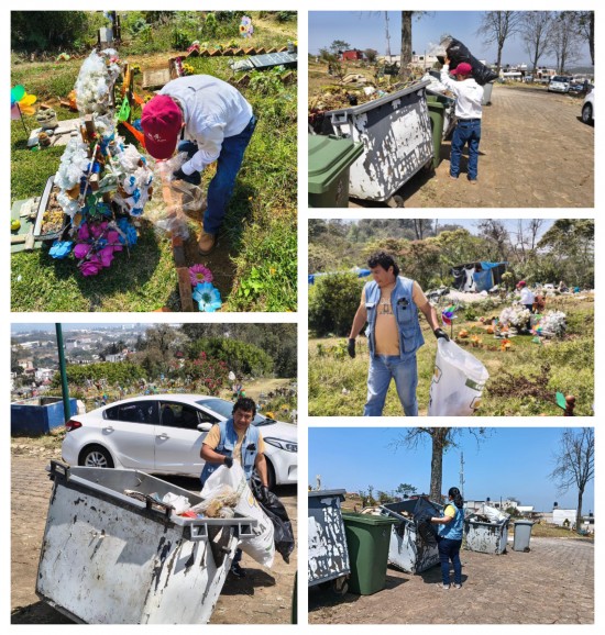 Como parte de las estrategias permanentes para la prevención del dengue, la administración municipal que encabeza la Alcaldesa, Lic. Daniela Griego Ceballos, implementa acciones de fomento sanitario en distintos puntos de la ciudad, con especial atención en espacios públicos de alta afluencia como los panteones. En coordinación con la Dirección de Salud, dirigida por la Dra. Vianed Martínez Cabrera, y el Departamento de Regulación Sanitaria, a cargo de la Q. C. Karis Cristina Llera Guevara, se recolectaron 70 kilogramos de residuos sólidos y se sanearon 100 tumbas en Bosques de Xalapa y se retiraron 75 kilogramos de basura, además de labores de limpieza en 110 tumbas de Palo Verde; mejorando las condiciones sanitarias de ambos espacios. También, el fin de semana se dio continuidad a estos trabajos, acopiando entre 75 y 90 kilogramos adicionales de residuos, así como el saneamiento de aproximadamente 100 tumbas más. Durante las jornadas se retiraron flores secas, se vaciaron recipientes y veladoras, y se eliminó agua acumulada en vasos y coronas, a fin de evitar encharcamientos que favorezcan la proliferación del mosquito transmisor del dengue. |